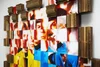 Career Retrospective (detail), stickers on plexiglas, 23 x 23 x 1 in.